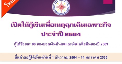 ประกาศ!! เรื่อง เปิดให้กู้เงินเพื่อเหตุฉุกเฉินเฉพาะกิจ ประจำปี 2564