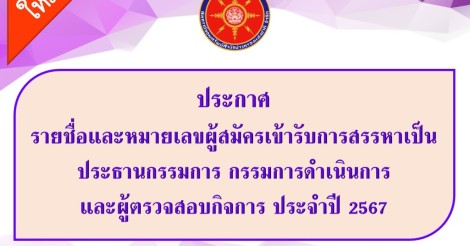 ประกาศ!! รายชื่อและหมายเลขสมัครเข้ารับการสรรหาฯ ประจำปี 2567
