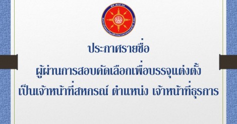 ประกาศรายชื่อผู้ผ่านการสอบคัดเลือกเพื่อบรรจุแต่งตั้งเป็นเจ้าหน้าที่สหกรณ์
