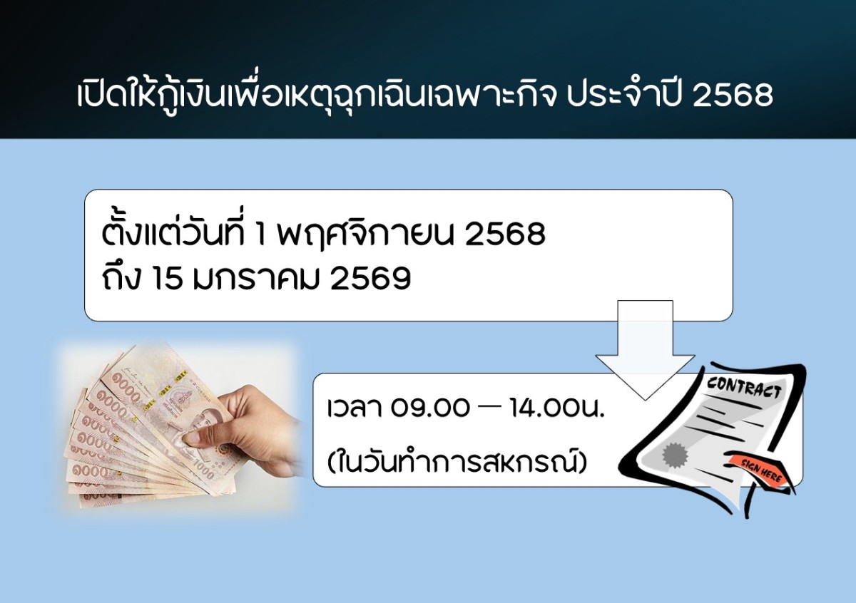 เปิดให้กู้เงินเพื่อเหตุฉุกเฉินเฉพาะกิจ ประจำปี 2568