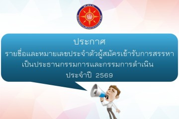ประกาศรายชื่อและหมายเลขประจำตัวผู้สมัครเข้ารับการสรรหาเป็นประธานกรรมการและกรรมการดำเนินการ ประจำปี 2569