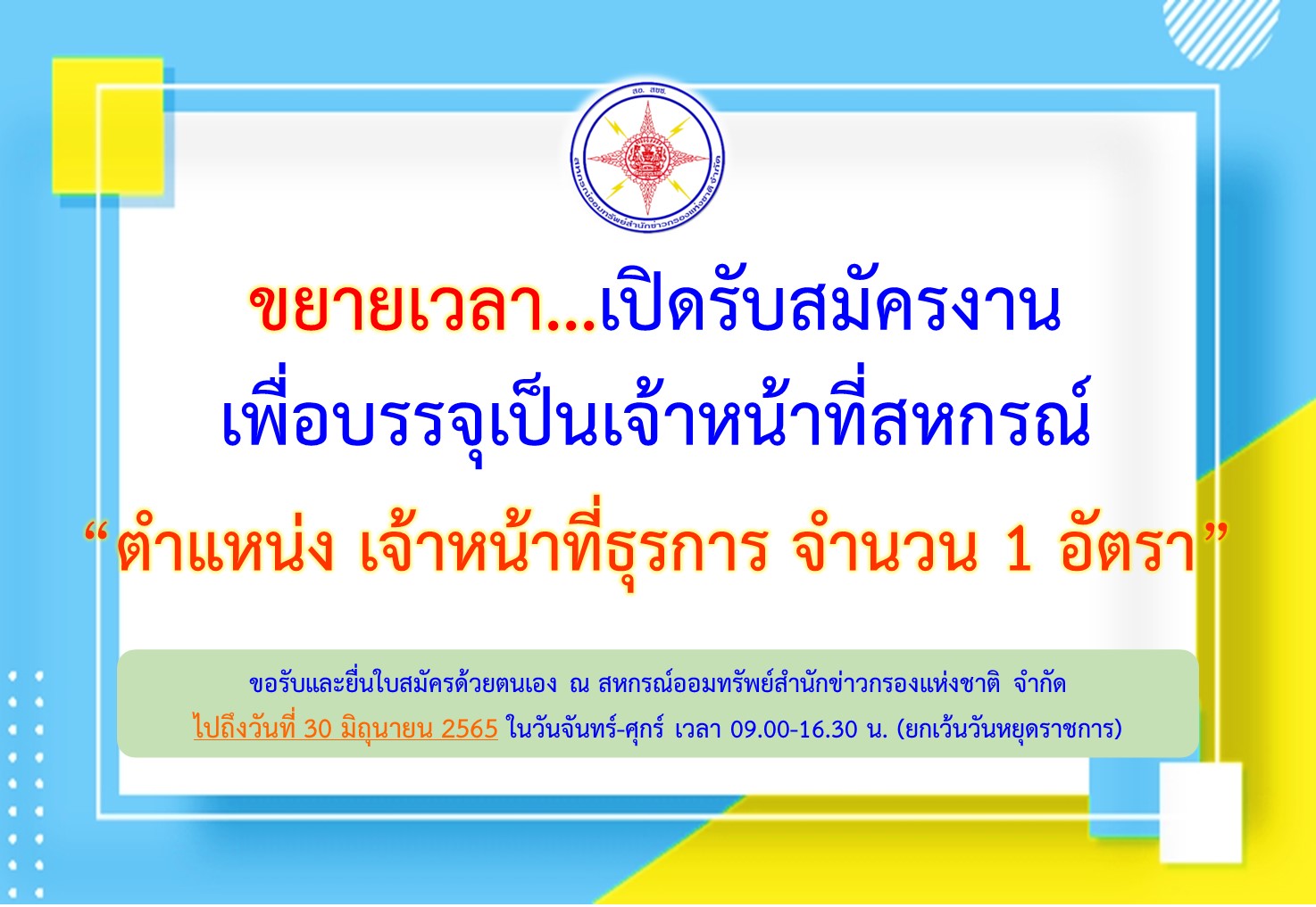 ขยายเวลาเปิดรับสมัครสอบคัดเลือกเพื่อบรรจุแต่งตั้งเป็นเจ้าหน้าที่สหกรณ์
