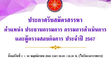 ประกาศรับสมัครสรรหา ประธานกรรมการ กรรมการดำเนินการ และผู้ตรวจสอบกิจการ ประจำปี 2567