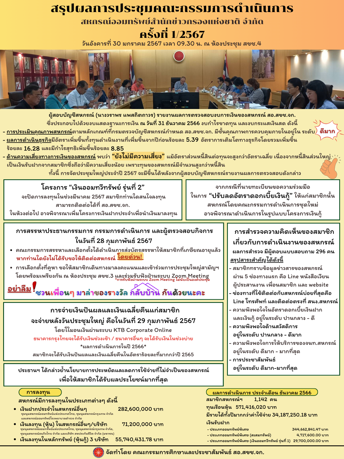 สรุปผลการประชุมคณะกรรมการดำเนินการ 1/2567