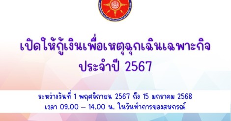 เปิดให้กู้เงินเพื่อเหตุฉุกเฉินเฉพาะกิจ ประจำปี 2567
