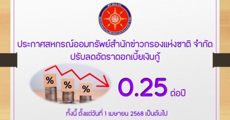 ประกาศปรับลดอัตราดอกเบี้ยเงินกู้